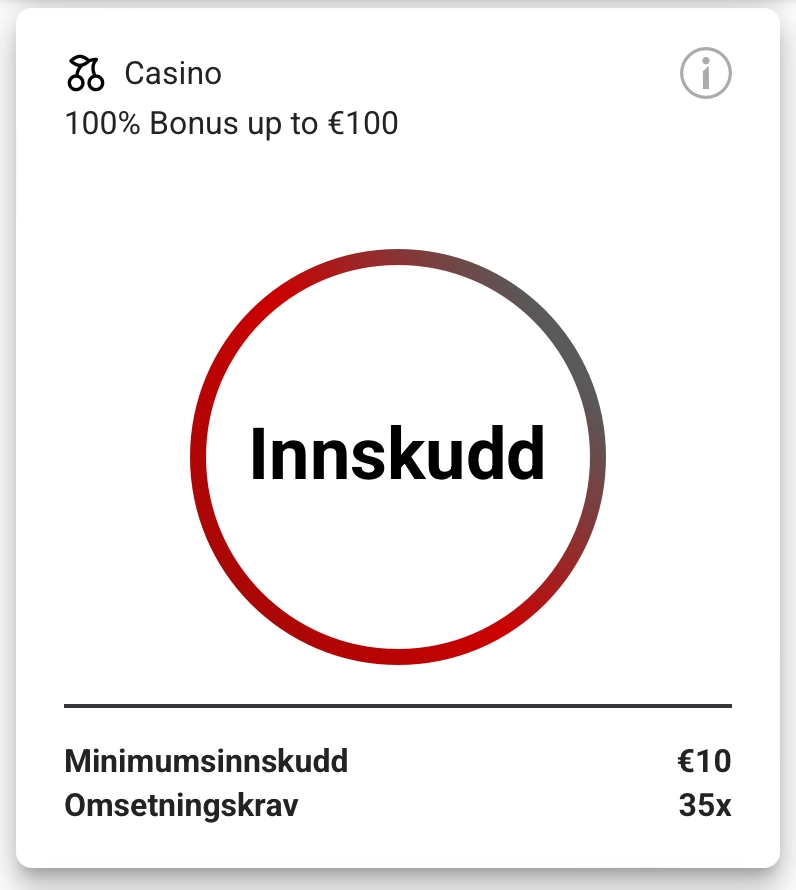 - Omsetningskrav: 35 ganger summen av innskudd + bonus.