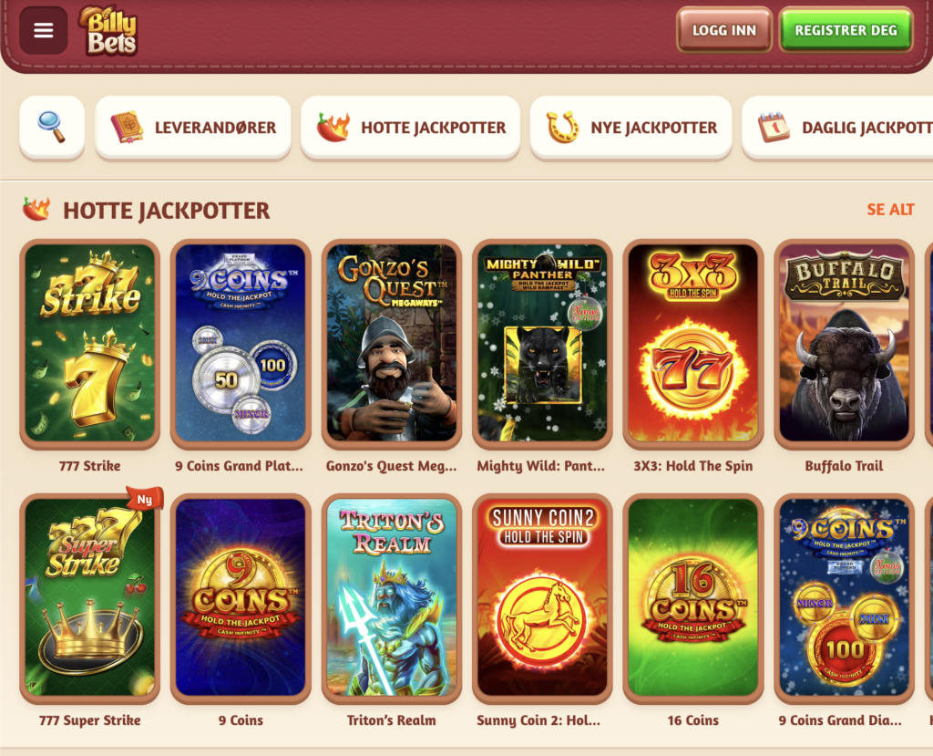 Hvordan finne jackpotspill på BillyBets